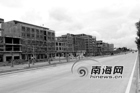記者在椰海大道邁仍村路段看到,道路兩旁矗立著一排排已停工的多層樓房。瓊山區城管執法大隊副大隊長王斌說,在邁仍村里還有不少違法建筑。