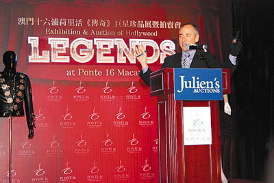 中新網(wǎng)10月12日電 據(jù)香港文匯報(bào)報(bào)道,澳門十六浦荷里活《傳奇》巨星拍賣會日前舉行。這是朱利安拍賣行于亞洲舉行的首個(gè)拍賣會,吸引了來自世界各地的競投家及收藏家參與,歷時(shí)11小時(shí)的拍賣會,成功拍賣共435件珍品,總成交價(jià)高達(dá)320萬美元,其中邁克爾·杰克遜的手套更是賣出21萬美元的高價(jià)。