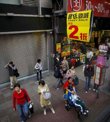 英國媒體6日刊登了一篇曾蔭權的訪問報道,內容談到特區政府如何應對國際金融海嘯的沖擊。曾蔭權說,他從未見過如此急速的經濟衰退,預計經濟收縮可能較特區政府預期的2%至3%為高。“本年前兩個月的出口下跌接近四分之一,這大概是自二次大戰以來最厲害的跌幅。”他續道,自90年代中國成為“世界工廠”開始,轉口貿易已成為香港其中一項最重要的“經濟引擎”。