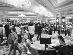 中新網(wǎng)3月24日電 據(jù)澳門日?qǐng)?bào)報(bào)道,澳門今年首兩月賭稅高達(dá)68億元,意味賭收超過(guò)170億元。倘首兩月強(qiáng)勁走勢(shì)持續(xù),全年賭收或可達(dá)1000億。有學(xué)者認(rèn)為,博彩市場(chǎng)做大后,貴賓廳豪賭有上升趨勢(shì),擔(dān)心澳門與休閑度假模式漸行漸遠(yuǎn),而中介人業(yè)務(wù)規(guī)范仍有待加強(qiáng)。