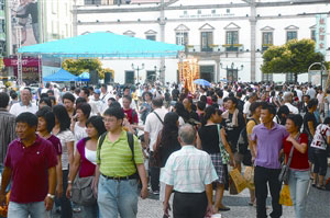 圖:澳門中區街道人流不息。(圖片來源:澳門日報)