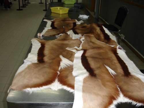 皇崗海關(guān)在粵港兩地牌照私家車查獲的羚羊皮。圖片來源:大公報