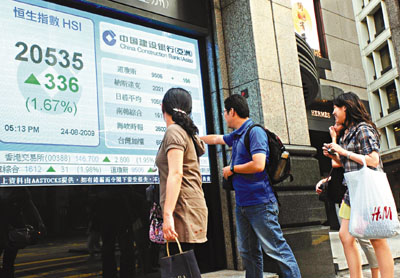 中新網(wǎng)8月25日電 據(jù)香港《文匯報(bào)》報(bào)道,受惠美國(guó)樓市數(shù)據(jù)回暖,及美聯(lián)儲(chǔ)主席伯南克樂(lè)觀經(jīng)濟(jì)評(píng)論,亞太股市24日全在線揚(yáng),帶動(dòng)全球股市創(chuàng)10個(gè)月高位。在外圍日股、A股造好下,帶動(dòng)港股向好,恒指全日收?qǐng)?bào)20535.9點(diǎn),升336.9點(diǎn),升幅1.7%,重上10天線,成交627億元。