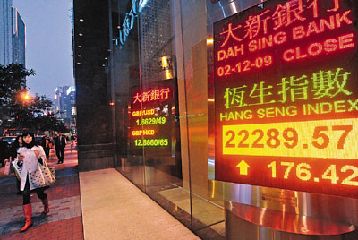 中新網12月3日電 據香港《文匯報》報道,外圍股市繼續造好,迪拜世界的陰霾看似消散,加上市場憧憬迪拜世界事件將拖慢各國政府的退市時間表,港股連升第3天,最多曾升326點,午后由于投資者觀望美國3日公布的最新經濟數據,港股升幅收窄,恒指全日收報22289.5點,升176.4點,成交額783億元,3天已累升逾1100點。