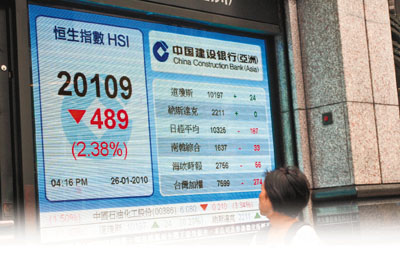 中新網(wǎng)1月27日電 據(jù)香港《文匯報(bào)》報(bào)道,期指結(jié)算臨近,港股沽壓持續(xù),恒指連跌5個交易日,累積跌1568點(diǎn),險守20000點(diǎn)關(guān)口。26日適逢多個壞消息出籠,亞太區(qū)股市近全線下挫,港股由開市跌至收市,全無反撲之力,恒指最多跌逾550點(diǎn),收跌489點(diǎn)或2.4%,跌至20109點(diǎn),成交777億元。