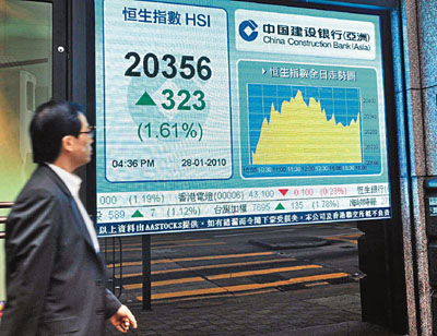 中新網(wǎng)1月29日電 據(jù)香港《文匯報(bào)》報(bào)道,聯(lián)儲(chǔ)局議息結(jié)果顯示前景樂觀,外圍股市回穩(wěn),連跌6天的港股在期指結(jié)算日也借機(jī)反彈,恒指最多彈逾400點(diǎn),全日收?qǐng)?bào)20356點(diǎn),升323點(diǎn),升幅1.6%,扭轉(zhuǎn)6天的跌勢(shì),但成交額卻減至664.7億元,反映買盤不活躍。
