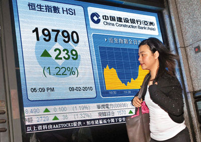 中新網(wǎng)2月10日電 據(jù)香港《文匯報》報道,市場憧憬歐盟高峰會將向希臘提供財政援助,略為紓緩?fù)饨绲膿?dān)憂,令港股結(jié)束3天跌市,9日全日收報19790點,升239點,總成交回升至619.21億元,國企指數(shù)則升211點,收報11200點。