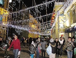 中新網12月18日電 據澳門日報報道,澳門回歸十周年將至,社會團體及特區政府機構均有安排活動慶祝。有游客表示,澳門各區掛滿回歸十周年的祝福橫額,全城洋溢歡樂氣氛。