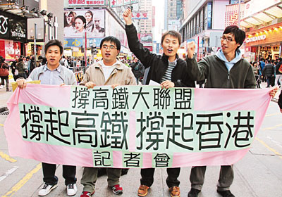 從事物業(yè)管理的倫銘佳表示,群組成員包括學(xué)生、在職人士,他們沒有任何政治立場(chǎng),也不會(huì)針對(duì)特定團(tuán)體,只是認(rèn)為香港興建高鐵,是百利而無一害,有信心高鐵是一個(gè)值得投資的項(xiàng)目。“西九方案未必是最佳,但已是較可行方案,且要將高鐵站建于近市中心及人口密集的地區(qū),才能發(fā)揮最大效益!甭(lián)盟也擔(dān)心若再拖下去,高鐵造價(jià)將高達(dá)逾1000億元。