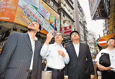 六月九日,腐蝕性液體傷人事件發生后,香港警方繼續對旺角奶路臣街與西洋菜南街交界處的幾棟嫌疑樓房進行布控,進一步排查疑點,大批香港媒體亦在現場跟蹤報道。 中新社發 鄭祚聲 攝