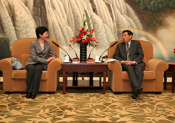 中新網1月11日電 香港發展局局長林鄭月娥展開訪問上海3天的行程,拜訪上海市副市長楊雄和城市規劃管理局的官員,并參觀多項特色建筑,包括優秀歷史建筑“老場坊”、工藝特色街“田子坊”,以及2010上海世界博覽會的會場。