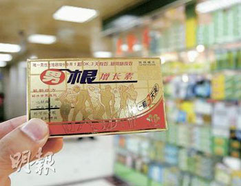 記者查問6間羅湖商業城藥房,發現半數店鋪有售賣疑可致命的“男根增長素”,店員承認光顧者包括港人。香港衛生署認為部分壯陽藥導致服用者死亡,或涉誤殺,故正與警方聯手調查事件。