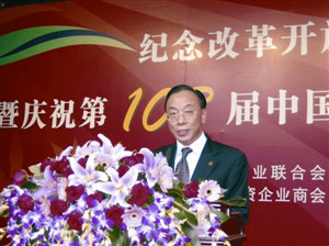 由廣州市工商聯(lián)、市總商會、市外商投資企業(yè)商會、市民營企業(yè)商會共同主辦的“紀念改革開放30周年暨慶祝第103屆中國進出口商品交易會開幕宴會”,14日在廣州白云國際會議中心舉行。廣州市長張廣寧,市委副書記蘇志佳,市委常委、統(tǒng)戰(zhàn)部長孔少瓊等,以及粵港澳商界代表逾1000人出席。