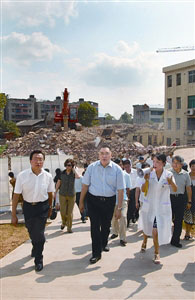 17日考察的各個(gè)地點(diǎn)災(zāi)情嚴(yán)重,魏城鎮(zhèn)鎮(zhèn)長(zhǎng)傅文東表示,地震發(fā)生至今已3個(gè)多月,該鎮(zhèn)大多受災(zāi)群眾生活基本已回復(fù)正常,老百姓都遷入了活動(dòng)板間房,生活設(shè)施如水、電、電視等也已全部接通,輔助設(shè)施正加緊興建,災(zāi)后重建工作已全面展開。目前該鎮(zhèn)7000多農(nóng)戶有重建住房的需要,政府現(xiàn)正積極籌集資金、物資及施工人員,讓老百姓可以在原地重建家園。