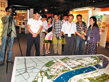 司錦泉副部長與港澳媒體記者參觀世博園區(qū)模型。(圖片來源:文匯報)