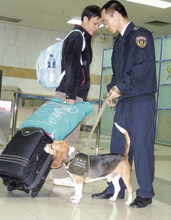 目前,廣東共有17只檢疫犬,分別駐守各關卡口岸,包括中山、順德、東莞、天河和番禺各2只;機場有6只;余下1只則在廣州站郵件辦事處執勤,全屬比格犬。順德出入境檢驗檢疫局長何偉棠說,他們選用比格犬,而不像北京選用拉布拉多犬,是考慮到上述口岸老少人流多,由體積較少較親民的比格犬執勤較合適。
