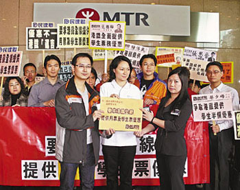 中新網(wǎng)3月25日電 據(jù)香港文匯報(bào)報(bào)道,自兩鐵合并后,港鐵雖已將票價(jià)調(diào)低,但在票價(jià)優(yōu)惠及安排上,仍存在不合理及不公平的情況,車費(fèi)收入也因乘客增加不減反升。逾20名民建聯(lián)成員24日到港鐵九龍灣總部請?jiān)福蟾坭F盡快落實(shí)全線提供月票及學(xué)生票優(yōu)惠。