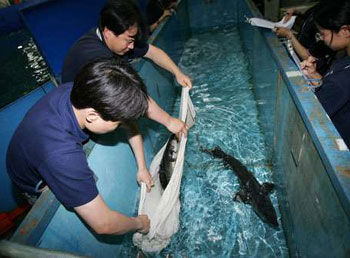 由于北京海洋館的中華鱘是一直在淡水環境下生活,所以在赴港前,三尾中華鱘都進行了一段時間的;柧殻蛊淠茉诤Kh境中適應生存。北京海洋館總經理胡維勇表示,將會有兩名北京方面的專業飼養員隨同赴港。在此之前,已有部分香港海洋公園的工作人員在北京接受了一個星期的培訓。