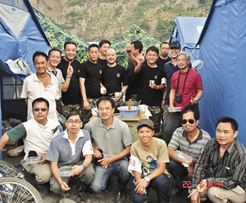 到晚上,18個人擠在兩個帳篷內(nèi)睡覺。莫昭友更不敢多喝水,擔(dān)心半夜要起身如廁,一來怕黑,二來怕吵醒其它隊員。至于吃的,他說帶往災(zāi)區(qū)的食物很少,幾乎三餐是吃面包、罐頭等干糧,“災(zāi)區(qū)的環(huán)境真的很難適應(yīng)。”幸而當(dāng)?shù)鼐仍藛T得知他們只吃干糧,晚上煮粥給他們吃。