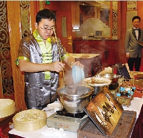 29日記者招待會現場,更邀請六家本次參加美食節的臺灣與會美食餐廳,如青青餐廳、宜蘭礁溪老爺大酒店、南投金都餐廳、河邊海鮮餐廳、度小月擔仔面、周氏蝦卷即場示范鎮店之寶的烹調,并向大家推介當地飲食文化。