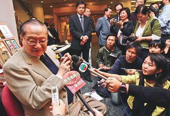 二月十六日,為緬懷上月底病逝的武俠小說宗師梁羽生,《大公報(bào)》和天地圖書在香港中央圖書館舉辦座談會。著名武俠小說作家金庸就梁羽生在當(dāng)代文學(xué)、詩詞、楹聯(lián)等方面的造詣和成就以及生平逸事趣聞,與其著作愛好者和公眾座談分享。 中新社發(fā) 張勤 攝