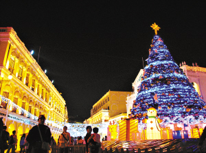 街頭和酒店璀璨的燈飾讓澳門很有節(jié)日氣氛。