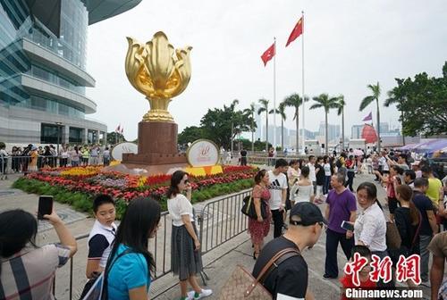 資料圖:香港金紫荊廣場迎來眾多內地游客。中新社記者 張煒 攝