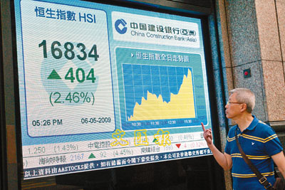 中新網5月7日電 據香港《文匯報》報道,港股連升5天升逾2200點,氣勢如虹,并以7個月高位收市,恒指重返去年10月水平。恒指6日收報16834.5點,升404點,升幅2.5%,成交額大增至806.2億元。