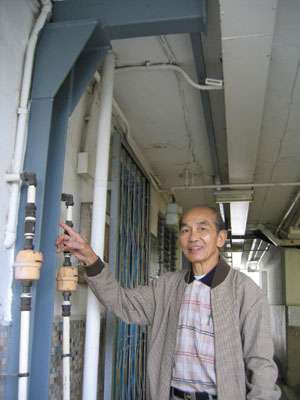 除此之外,華清樓03室對面的樓梯,墻身與地面到處都是裂痕與修補痕跡。其中一道長達數尺的裂痕,闊度足可放入2元硬幣。華清樓互委會主席陳富松表示,房署人員曾稱該座樓梯每2年就要修補,已經補無可補,建議整座樓梯拆卸重建。