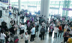 大批滯留澳門的乘客,以隨團(tuán)來澳或到內(nèi)地旅游的臺灣客居多。部分旅行團(tuán)領(lǐng)隊為盡早安排游客前往目的地,一早便安排旅游車將游客接到機(jī)場候機(jī)。