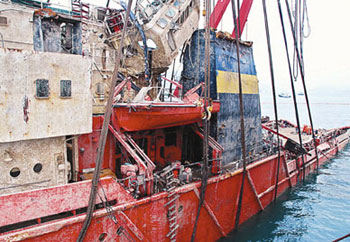 3月29日,香港政府與烏克蘭政府代表團(tuán)就調(diào)查沉船事故發(fā)表聯(lián)合聲明同意打撈。本月2日,烏克蘭船主和交通部廣州打撈局簽訂合約,起用全亞洲最大打撈船“華天龍”號(hào)和“南洋”號(hào)進(jìn)行打撈工作,先后將18名船員的遺體尋獲。