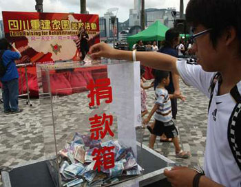 四川大地震激發(fā)港人慷慨解囊,截至本月23日,香港各界累計(jì)向?yàn)?zāi)區(qū)捐款達(dá)21億港元,捐贈(zèng)人數(shù)之多、規(guī)模之大、時(shí)間之長(zhǎng),均創(chuàng)下新紀(jì)錄。
