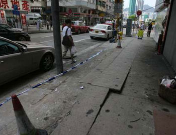 另外,高溫下土瓜灣北帝街出現懷疑“熱爆街”事件,行人路一幅約兩尺寬路面,突然石屎爆裂拱起約4寸高,不排除與天氣過熱有關。
