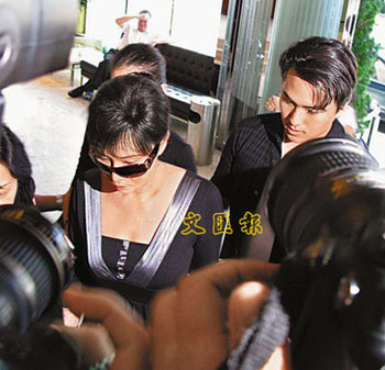 身穿深色裝束的三太縱然已戴上太陽眼鏡,但仍難掩哀傷神情,一言不發(fā)的在保鏢開路下匆匆進(jìn)入靈堂。至于陪同母親步入靈堂的超蓮和猷啟則沒有戴上太陽眼鏡,但同樣表情神傷。