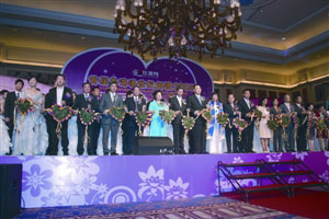 中新網9月1日電 據澳門日報報道,2999對來自粵港澳三地的情侶及夫妻8月31日薈聚濠江,參加由女企業家商會主辦的“愛在澳門——首屆粵、港、澳世紀婚禮2008”活動。