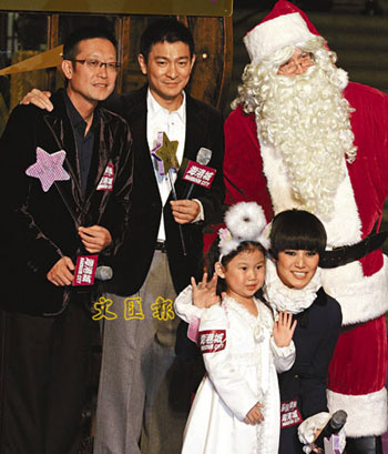金融海嘯影響香港市道,但圣誕燈飾亮起添了幾分燦爛繽紛,華仔也在一顆星星飾物之上寫上“幸福”二字,祝愿香港人永遠(yuǎn)都活得幸福。何韻詩都希望香港人能多“關(guān)注”和“包容”,劉偉強(qiáng)也祝愿“世界和平”。至于沒有出席的女主角舒淇,她也一早拍了片段,向市民講圣誕快樂。