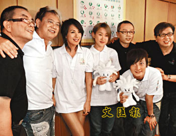 眾歌手為“香港2009東亞運動會主題曲”國際版《You are The Legend》錄音。(圖片來源:文匯報)