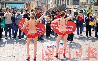 其中一人表示,穿內(nèi)衣宣傳主要是吸引公眾注意,她們是第一次在澳門進(jìn)行相關(guān)活動,但在世界其它地方就進(jìn)行超過100次。她有感澳門是個浪漫和熱情的城市,且公民接受能力強(qiáng),故特選情人節(jié)前在澳宣傳,相信能有效傳播善待動物的信息。