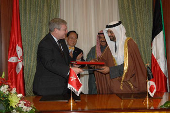 曾蔭權(quán)27日率領(lǐng)商界高層訪問團抵達(dá)科威特,展開中東的訪問行程。這是曾蔭權(quán)自2005年出任行政長官后,首次到訪中東。他表示,中東石油儲備帶來的收益達(dá)每年10,000億美元,而隨著油價上升這數(shù)愈字愈大,這些資金需要渠道以作投資,有效地消化和尋找投資機會。