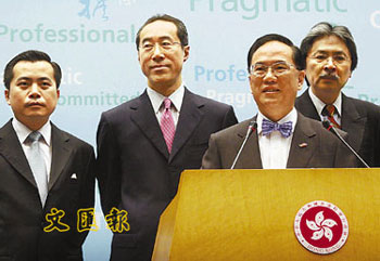 “資料圖:2008年2月27日”二月二十七日,香港財政司司長曾俊華發表上任后首份財政預算案,在庫房高達一千一百億港元盈余下,為一百五十萬納稅人帶來好消息。 中新社發 譚達明 攝