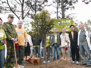 23日上午近11時,這次主題為“軍民同心齊綠化,節(jié)能減排為國家”的植樹活動正式開始,王玉仁、趙存生與有關(guān)嘉賓,以及200名駐澳部隊官兵及近千名居民、學(xué)生,經(jīng)過20分鐘步行來到了大潭山山上。