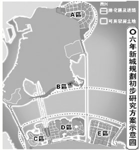 因而特區政府在2006年向中央申報澳氹新城區填海規劃的初步研究建議,提出分別在澳門半島的東北、新口岸孫逸仙大馬路以南及氹仔以北共填海398公頃。劉仕堯強調,特區政府并無20多平方公里的填海方案,至于以何種方式填海更未有規劃。