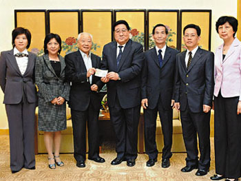 李東海基金有限公司15日慨捐1000萬(wàn),由李東海與兒子李君豪一起遞交了善款支票。 有近8年時(shí)間住在四川的香港知名工業(yè)家蔣震,在兩個(gè)女兒陪同下到中聯(lián)辦捐出1000萬(wàn)元的支票。