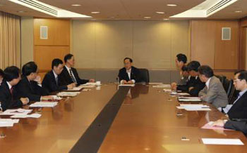 特首曾蔭權(quán)9日下午在中區(qū)特區(qū)政府合署會見鄉(xiāng)議局代表,繼續(xù)就《施政報告》進(jìn)行咨詢。(圖片來源:文匯報)