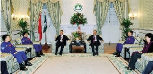 何厚鏵在晚宴前會見了代表團一行,國家載人航天工程贈送“神舟七號”載人飛船模型給特區政府,何厚鏵代表特區政府贈送金蓮花擺設給代表團。