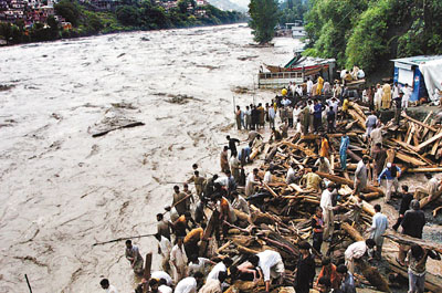 巴基斯坦北部凱伯爾-普什圖省是重災(zāi)區(qū),進(jìn)入緊急狀態(tài)。貝沙姆地區(qū)泥石流,將多間房屋掩埋,活埋49人。賈爾瑟達(dá)地區(qū)一個新建堤壩崩塌,5000棟房屋被洪水沒頂,估計40萬人被困西北部各村落。