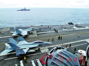 “喬治·華盛頓”號航母的動向格外引人關注。該航母于7月底參加了在韓國東部海域(即日本海)舉行的韓美聯合軍演。