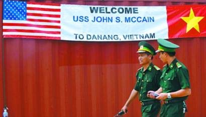 繼美軍核動力航母“喬治·華盛頓”號8日抵達越南中部峴港附近的南海海域后,美軍“約翰·麥凱恩”號驅(qū)逐艦又于10日在越南峴港靠岸,準備進行軍事交流。此時正值南海問題引發(fā)外交紛爭之際,美越間的頻繁互動成為各方關(guān)注的焦點。