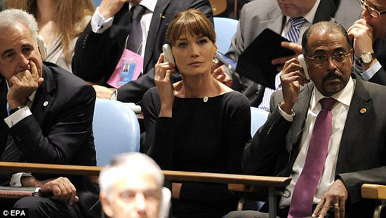 中新網(wǎng)9月21日電 據(jù)香港“星島日報網(wǎng)”報道,法國第一夫人布魯尼因為近期兩本新書的爭議性內容而成為傳媒焦點,她20日陪同總統(tǒng)丈夫薩科齊出席聯(lián)合國千禧發(fā)展目標峰會時,以一襲柯德莉夏萍裝亮相,實時吸引記者鏡頭。但最引人入勝的是,她在聆聽丈夫發(fā)言時,竟拿起傳譯耳機,難道她聽不懂丈夫的語言?