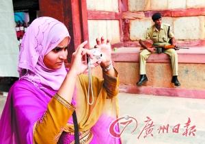 奧巴馬訪印期間將參觀新德里胡馬雍陵,為此印度方面也加強了這一景點的安全防范。圖為5日,一名印度居民在胡馬雍陵拍照留念。